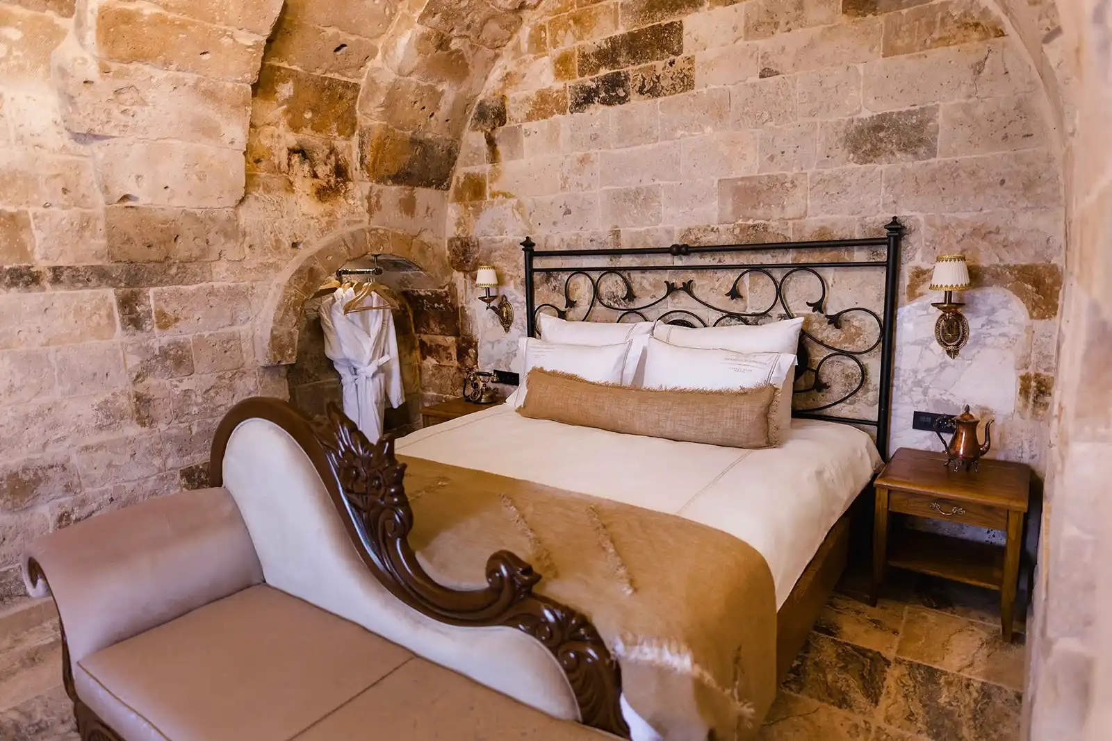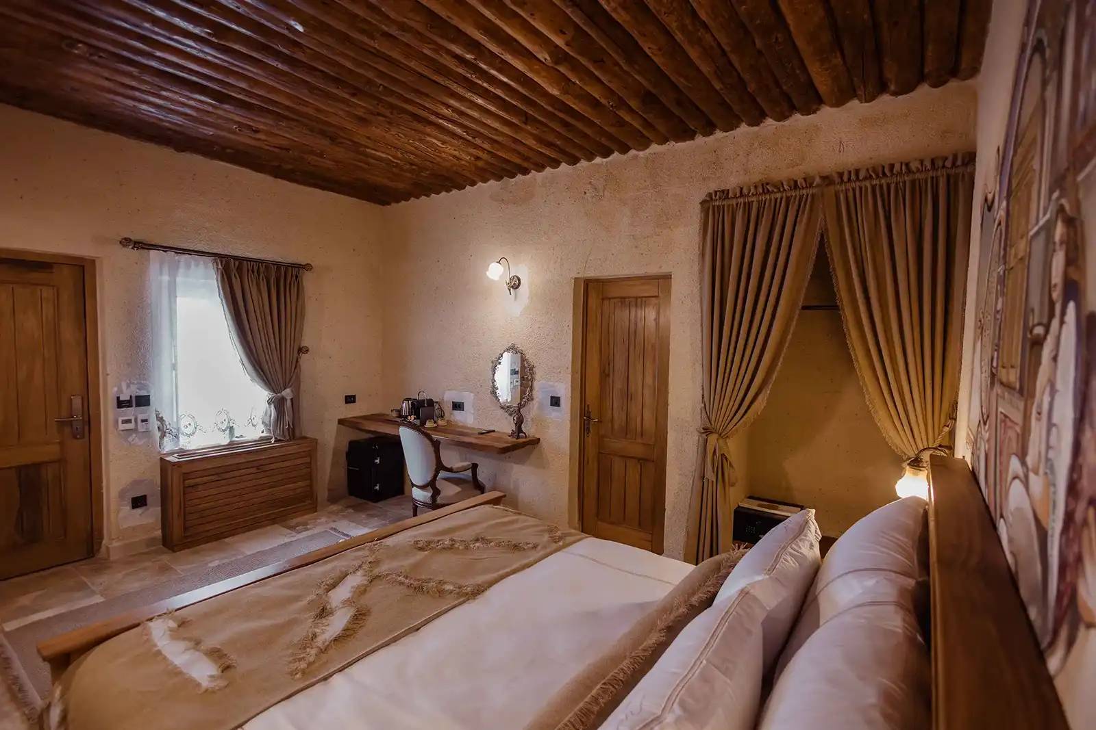 Set within the heart of Cappadocia’s mesmerizing landscape, our 25 m² Deluxe Stone Rooms seamlessly blend timeless charm with modern comfort. Every corner is thoughtfully designed to offer an authentic yet sophisticated experience, where natural stone textures evoke the spirit of the region while luxury touches ensure a restful escape.