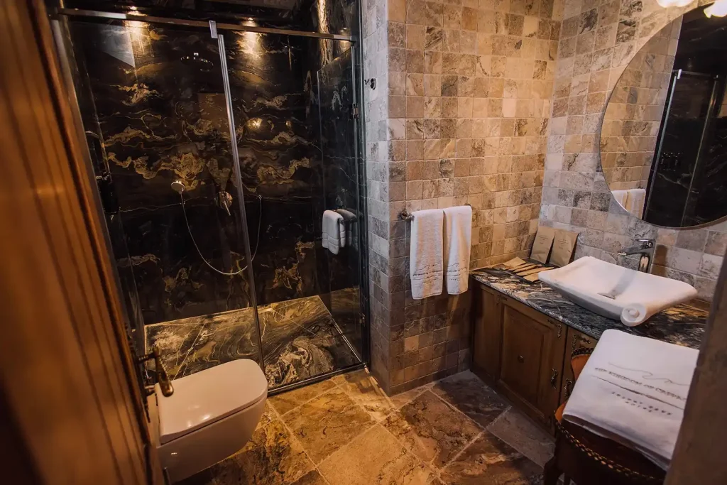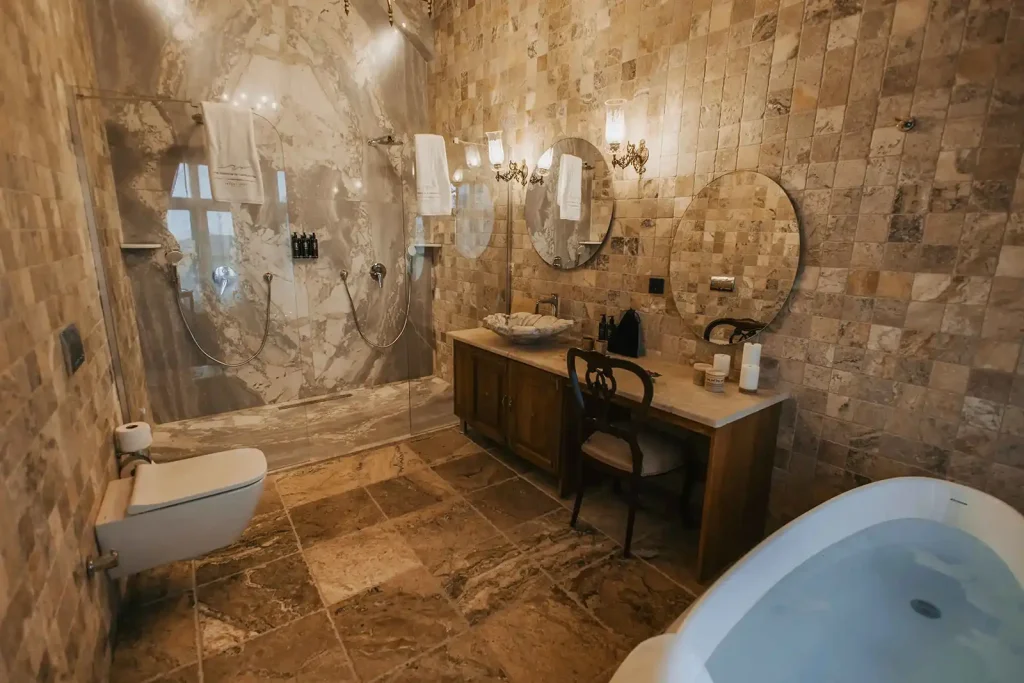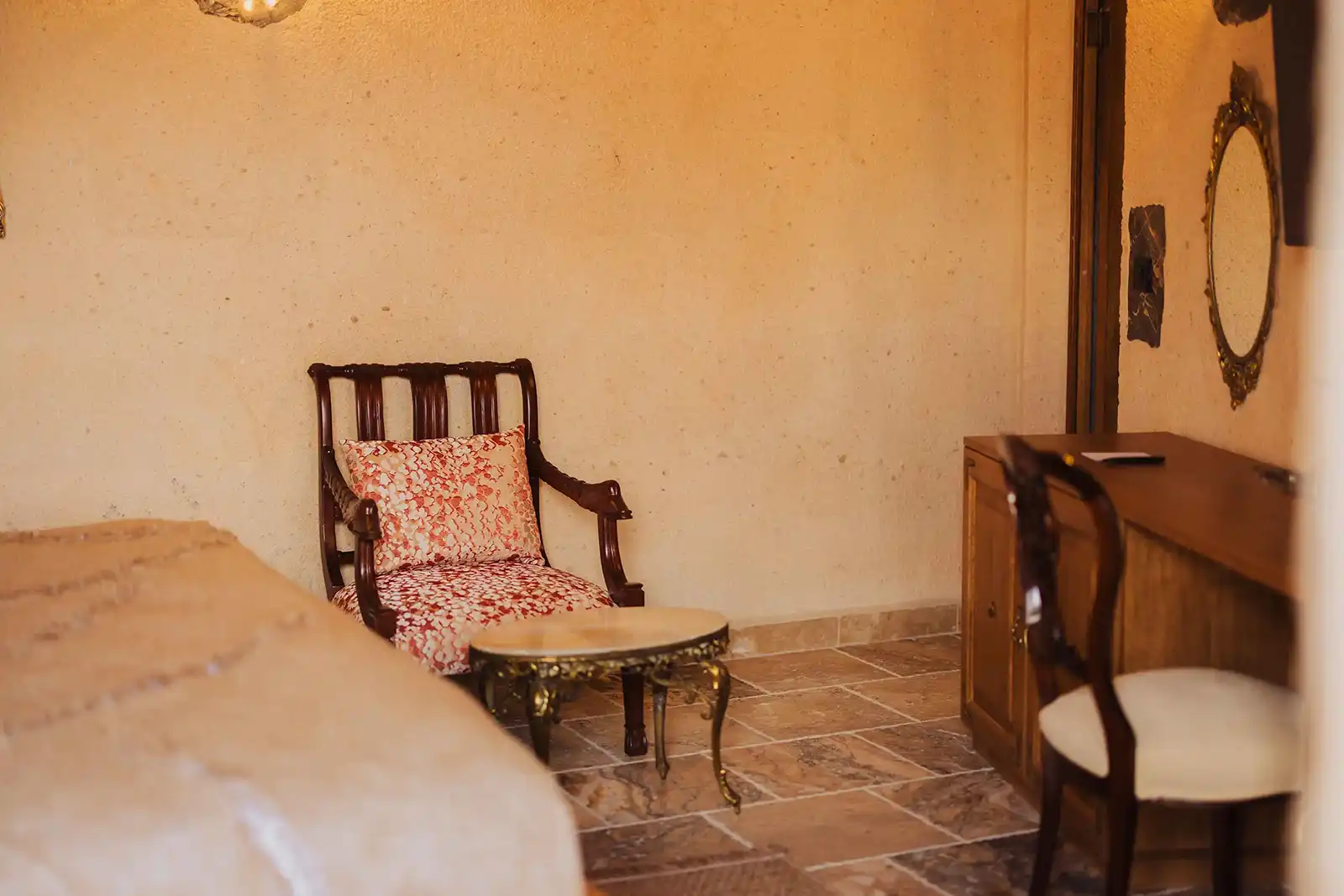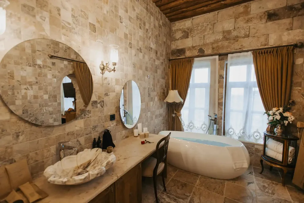 Inspired by Cappadocia’s architectural heritage, these rooms feature premium bedding, carefully selected furnishings, and an inviting ambiance that effortlessly captures the essence of tranquility. Soft lighting enhances the warmth of the natural stone surroundings, while intricate details pay homage to the craftsmanship of generations past.