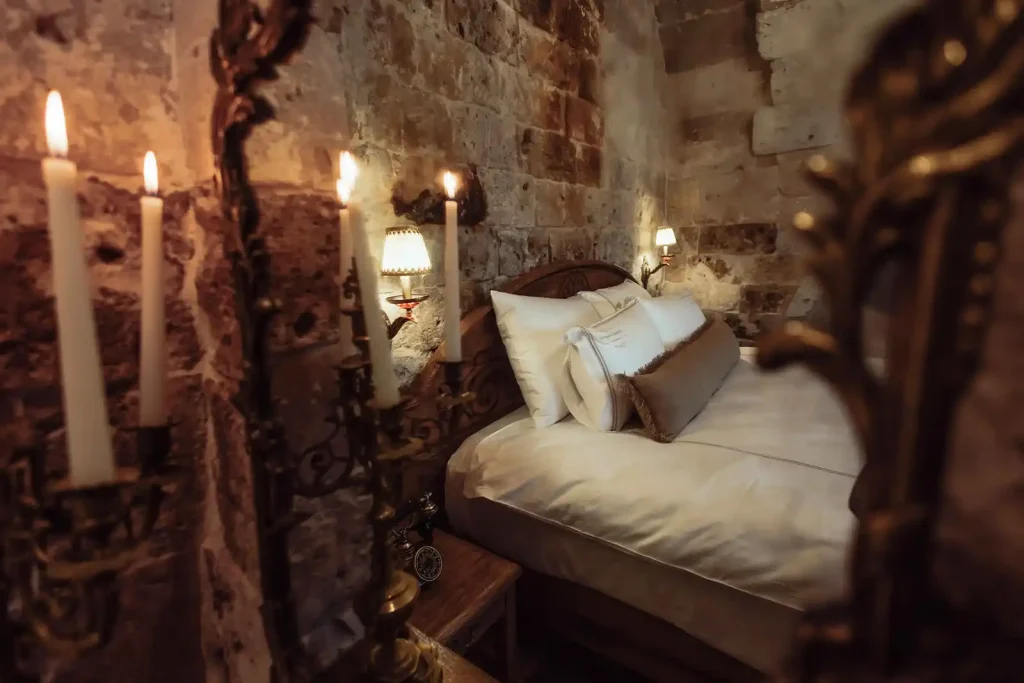 Each suite is carefully crafted to embrace both comfort and authenticity, featuring vaulted ceilings, curated furnishings, and interiors sculpted from natural rock formations.